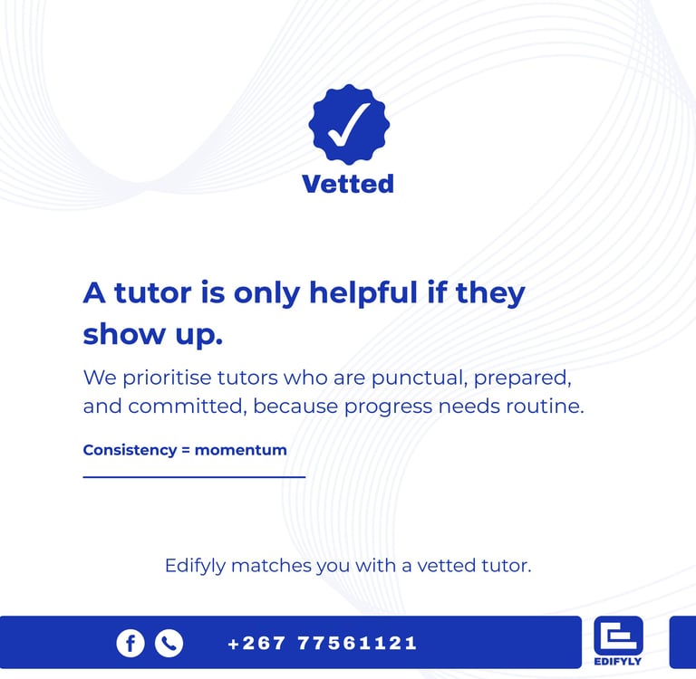 Edifyly was born to end the frustration of finding quality tutors in Botswana quickly and reliably.